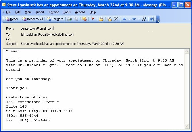 - Automatically determines whether to send an e-mail or a text message to the patient
