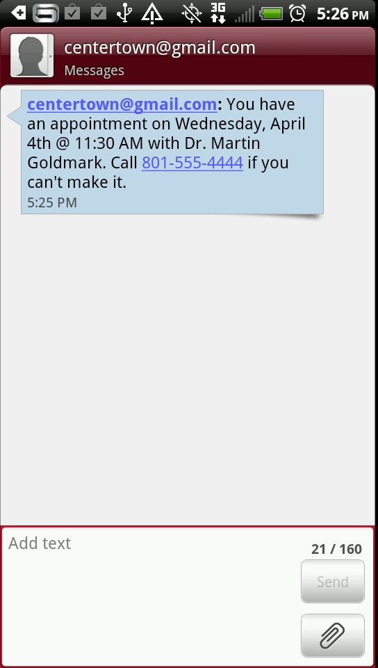 Unlike annoying automated phone calling systems, e-mail and text messages are non-intrusive ways of contacting your patients and increasing your revenue. QMB AppointRemind pays for itself with just a few saved appointments and is the most effective and least expensive way to keep your practice at full capacity.